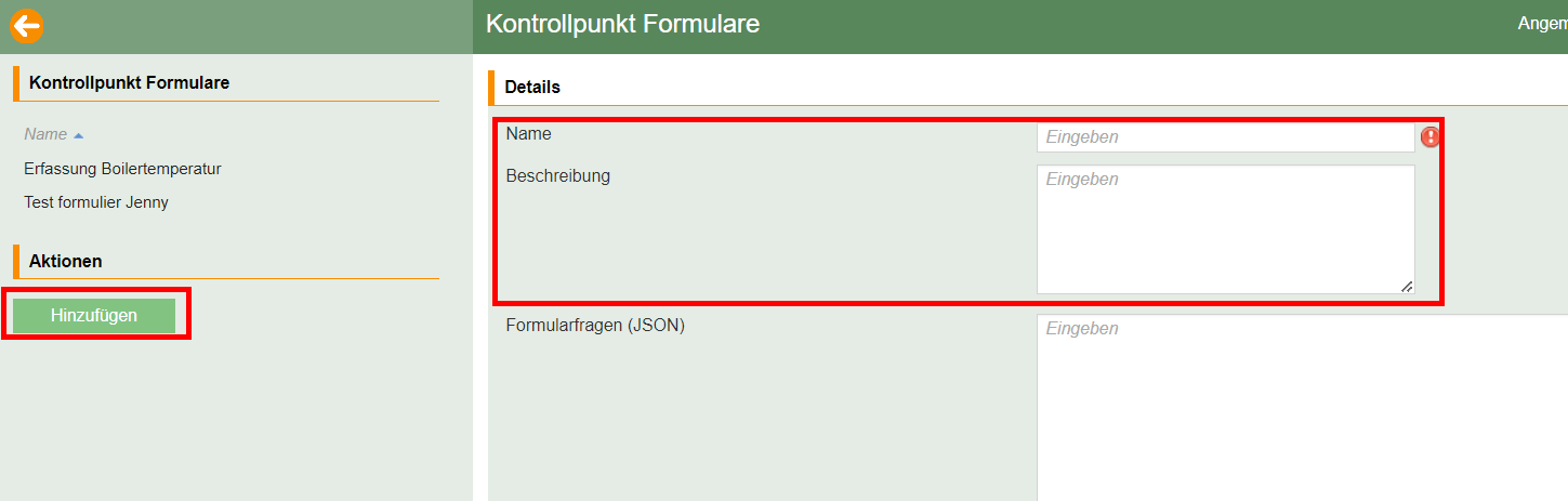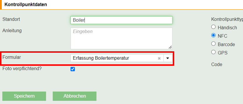Beispiel Flexibles Formular für einen Kontrollpunkt