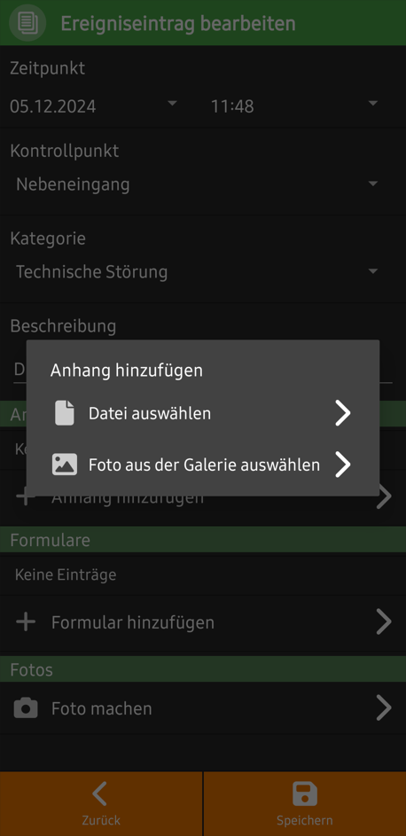 Darüber hinaus ist es möglich, um in der Aufgabenauswertung im Backoffice bei Wachbucheinträgen nachträglich Fotos vom Computer hochzuladen. Diese Fotos erscheinen im Kundenbericht. Funktioniert nur, solange der Aufgabenbericht noch nicht verschickt wurde.